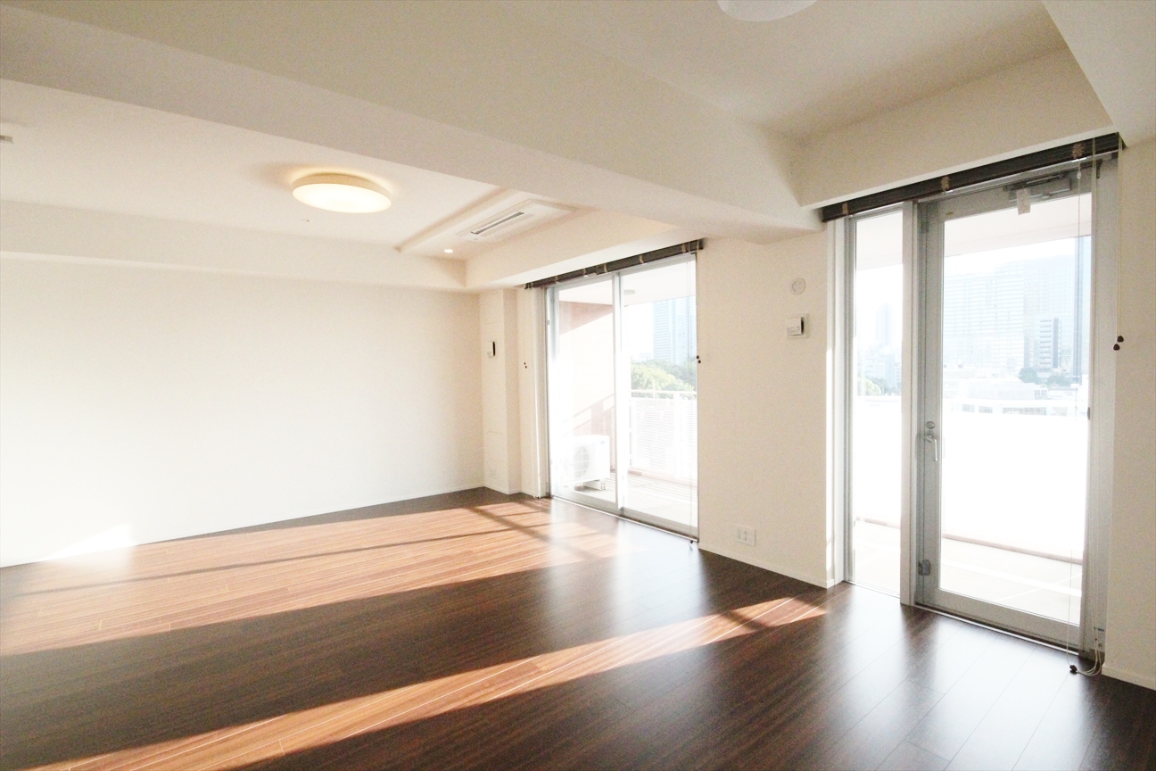 ゆったりとしたリビング空間、広々ワイドバルコニー(21.46㎡)採用。