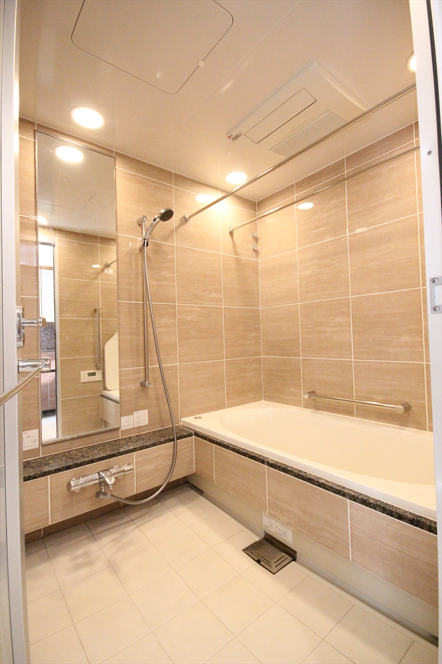 追い焚き | バルコニー | トイレ | フローリング | 公営水道 | モニタ付インターホン | 公共下水 | 宅配BOX | ウォークインクローゼット | 室内洗濯機置場 | 温水洗浄便座 | 床暖房 | エアコン | 敷地内ごみ置き場 | エレベーター | 洗面所独立 | オートロック | 浄水器 | ガスコンロ付 | 浴室乾燥機 | ディスポーザー