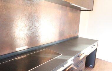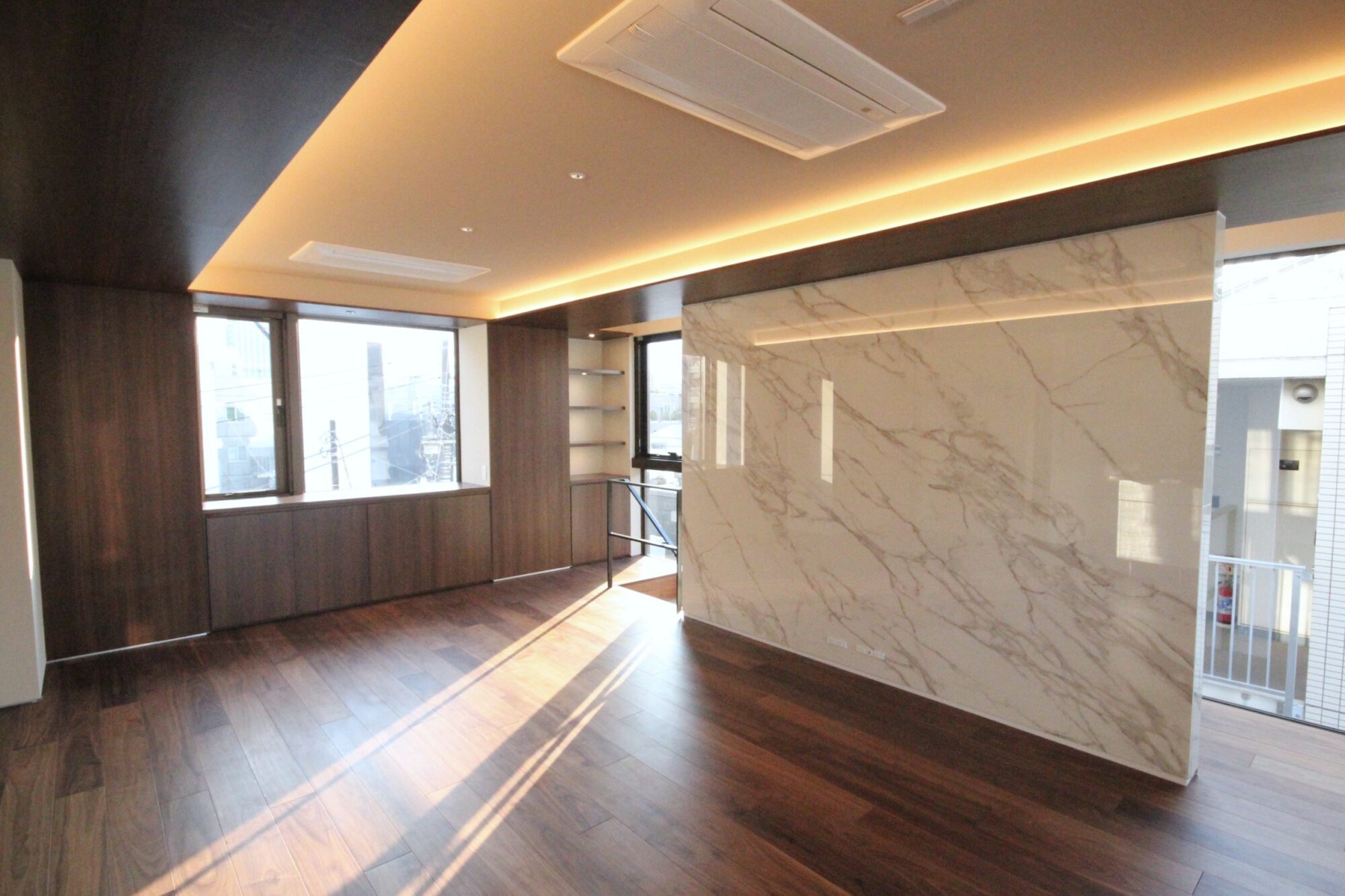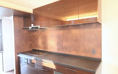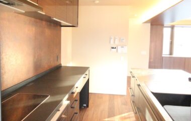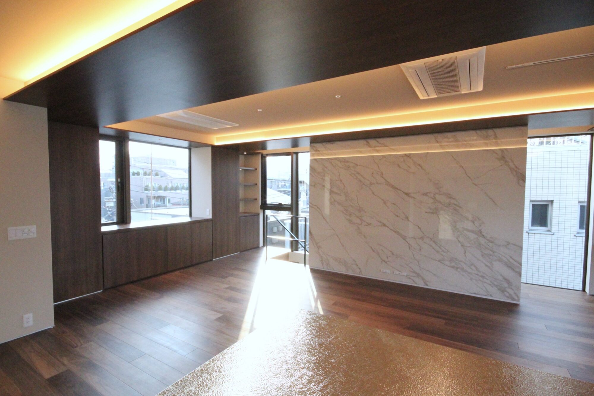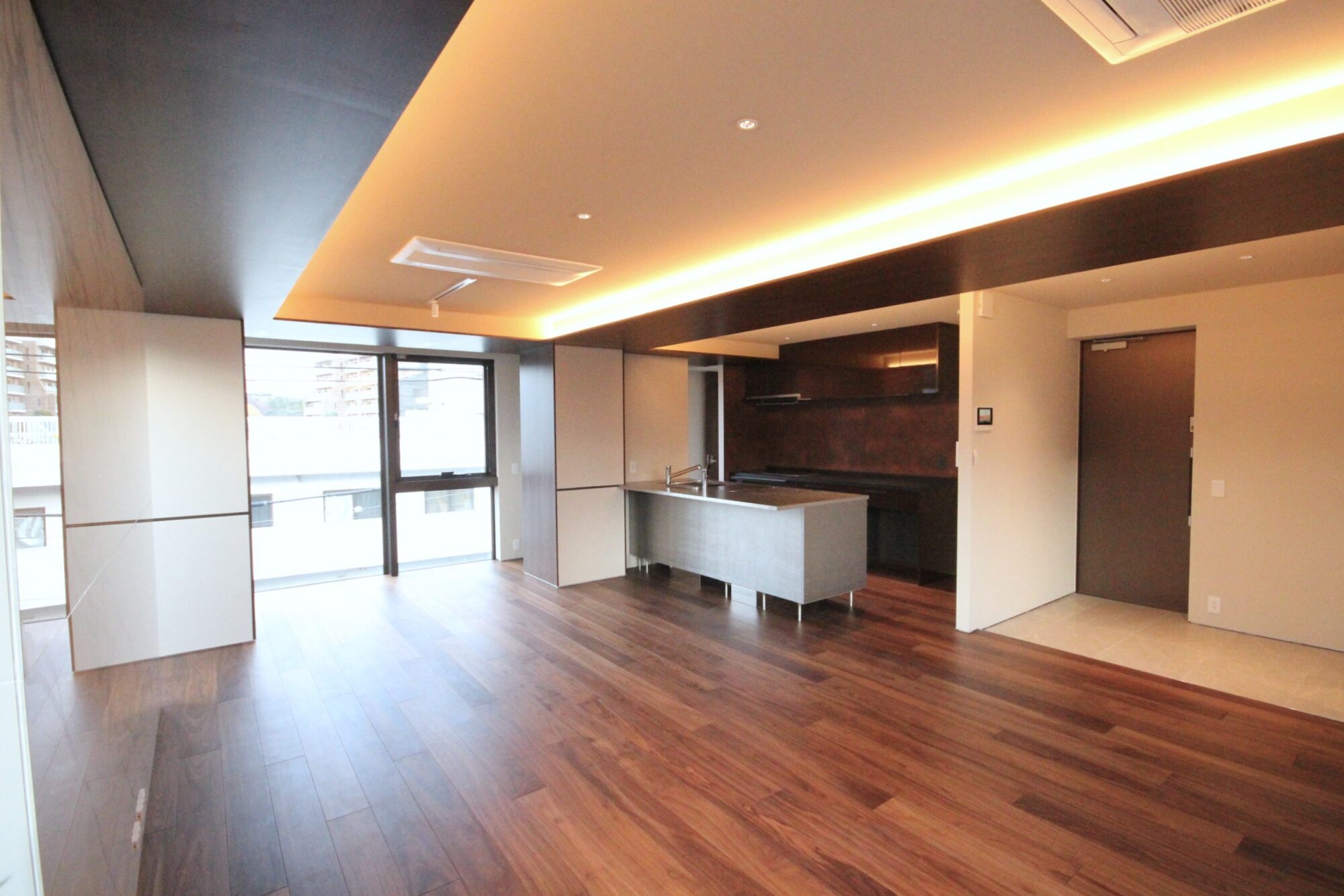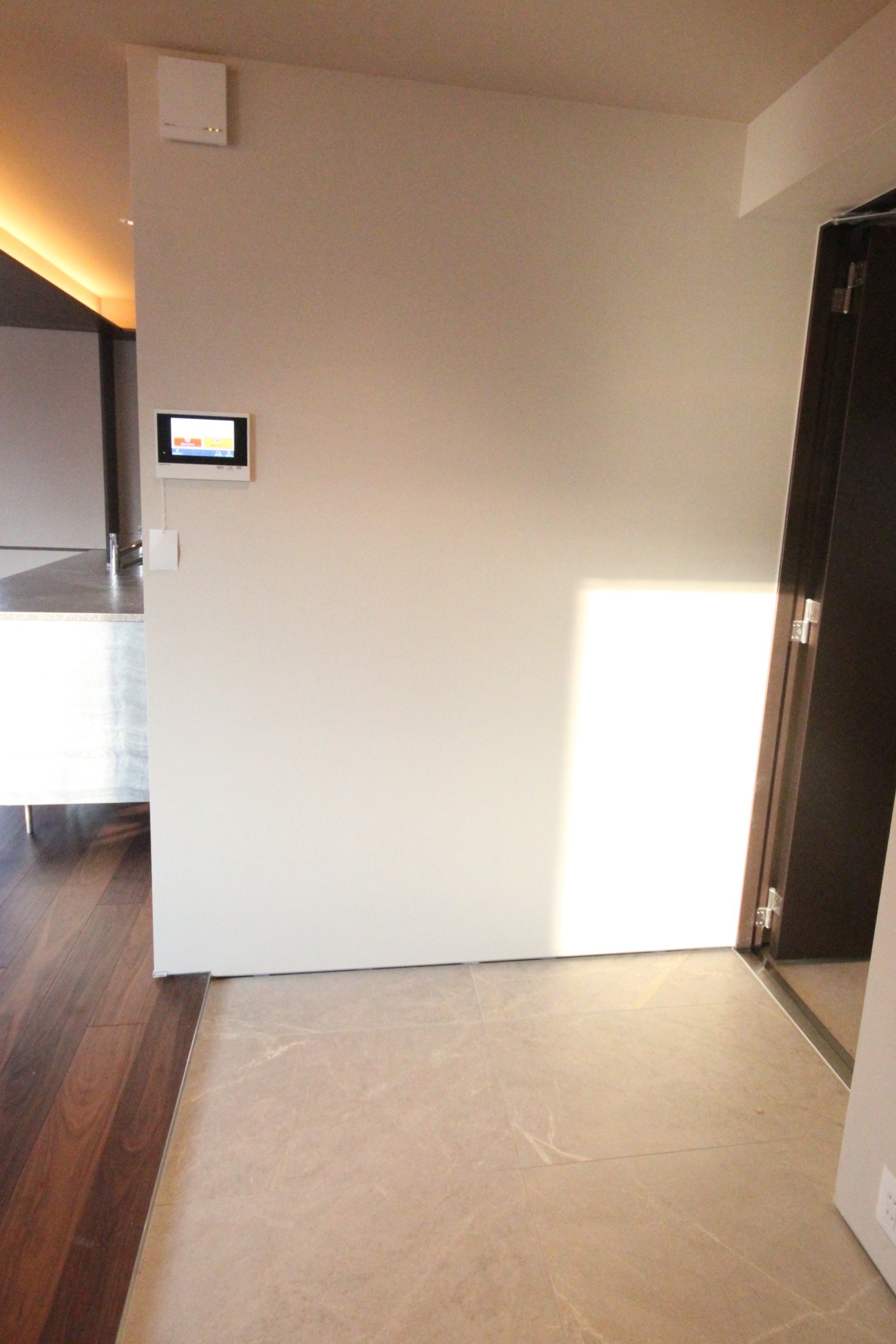 4FのLDKは大判大理石タイルがアクセントの高級感ある内装。