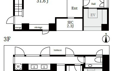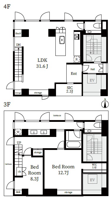 3F~4FのB号室は戸建感覚のメゾネットタイプ。