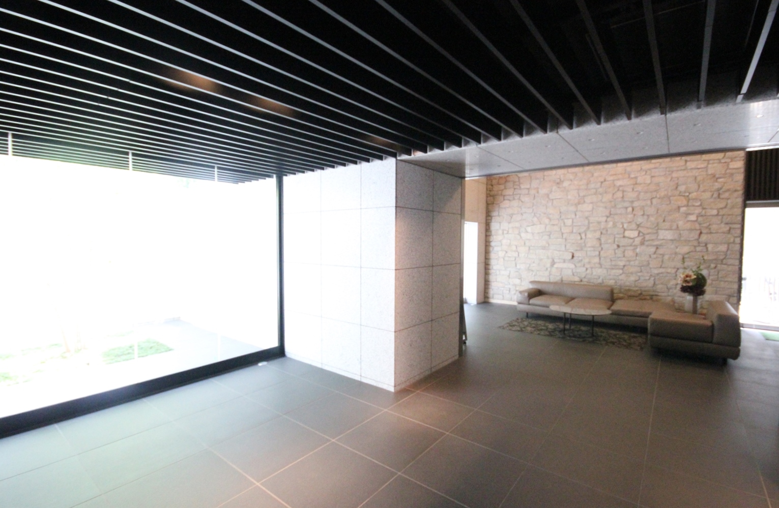 エントランスホールは石の風合いを