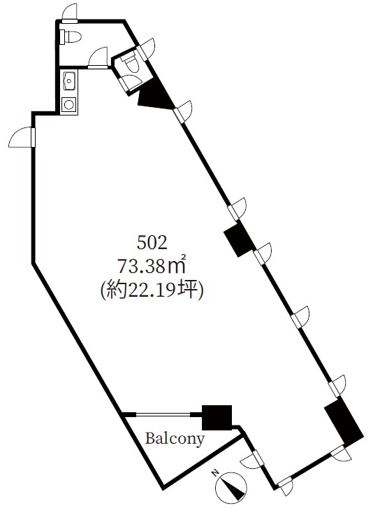 5階角部屋 22.19坪。事務所仕様