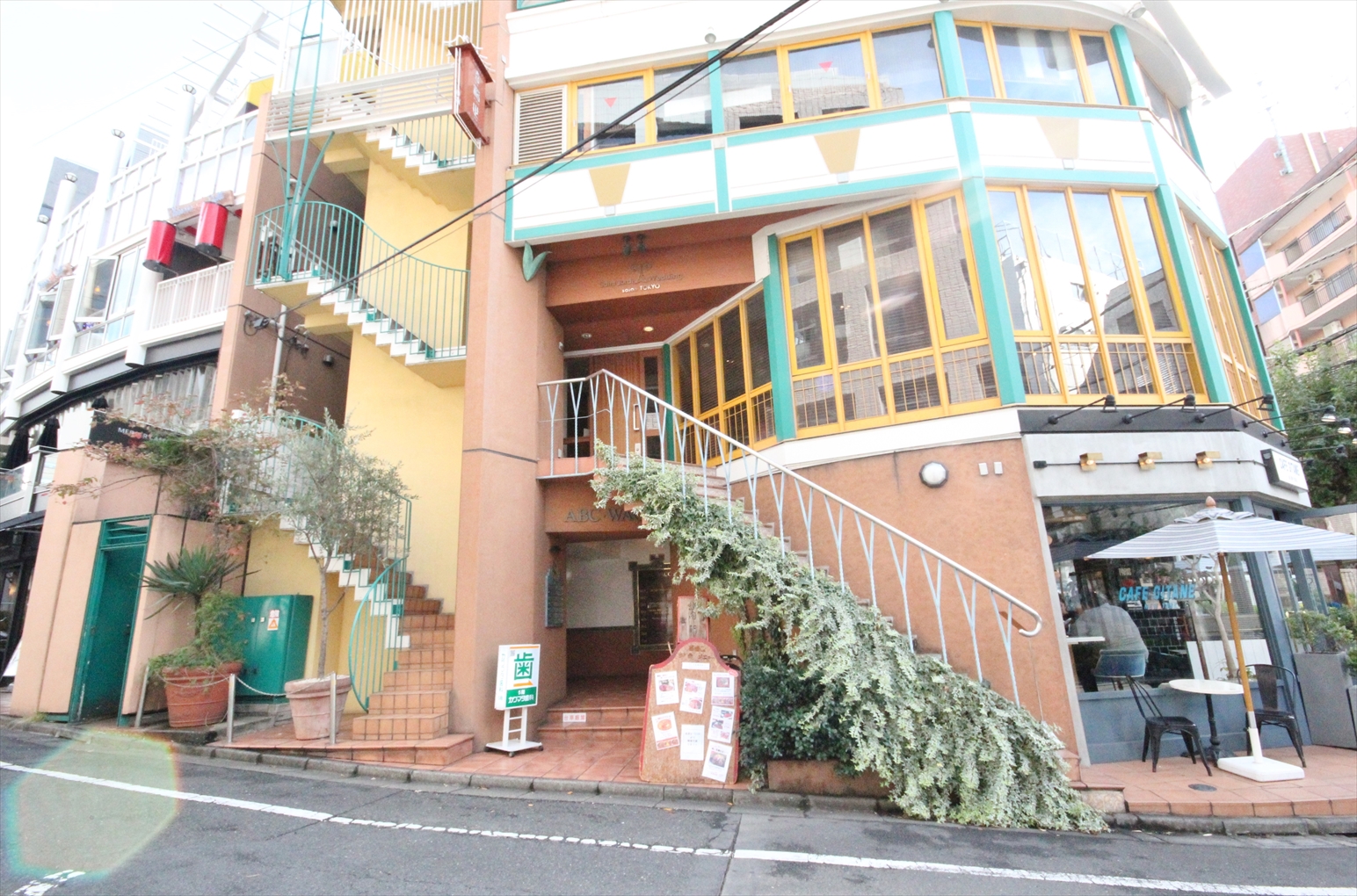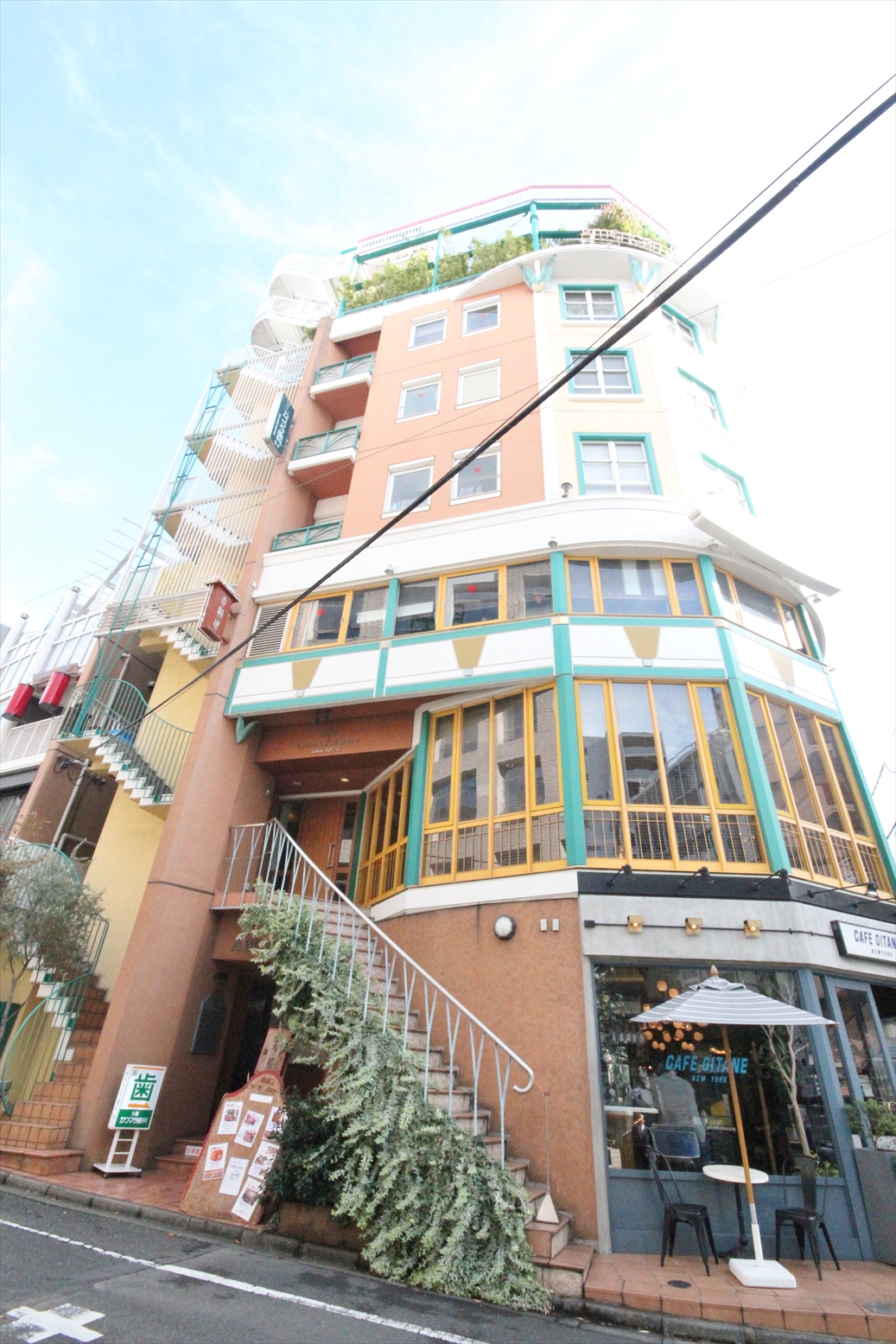 恵比寿徒歩4分の街中でも目を引くカラフルでお洒落な外観。